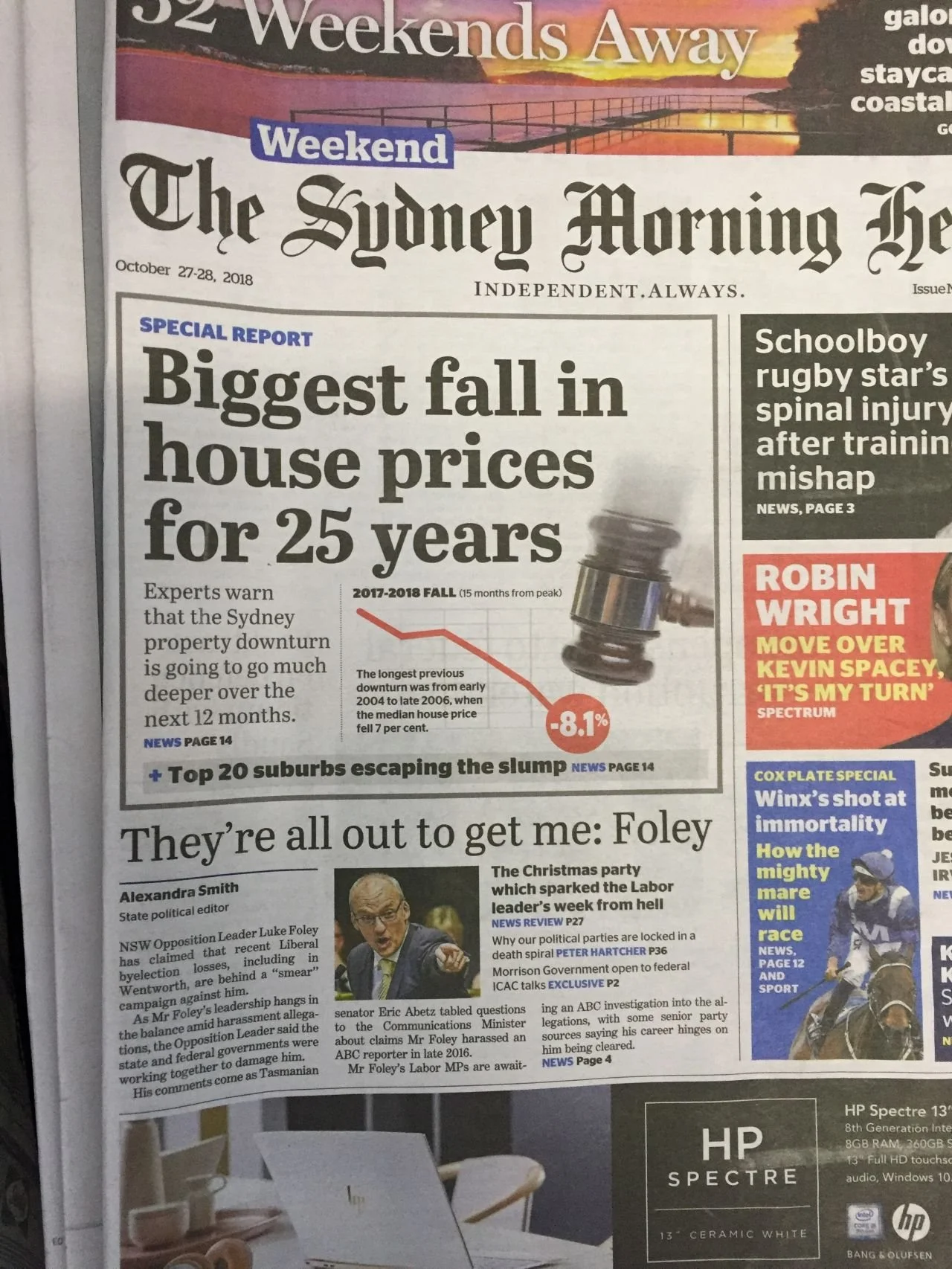 October 27, 2018. Front page of the Sydney Morning Herald read: